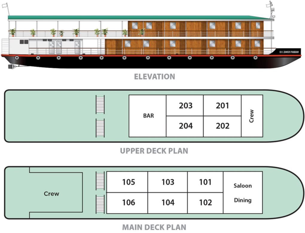If the cruise encounters difficulty in embarking and disembarking passengers at the scheduled points, RV Zawgyi Pandaw will bear no extra cost of transporting to and from the embarking and disembarking place except for the case that the passengers or their agents have purchased a package tour including our land services. Any reason for altering the place of embarkation and disembarkation will not be considered a reason for terminating this contract.