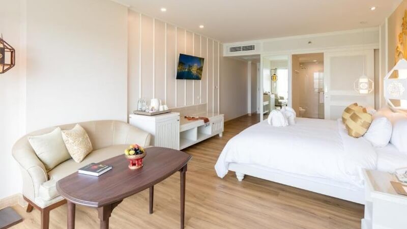 Very comfortable and recently renovated modern and traditional decor resort hotel next to river with amazing views and luxury facilities and services! Very nice corner suite room with Seekarte living and bedrooms, beautiful white large bathroom and huge balcony and breathtaking views of river, mountains and pool! Good breakfast buffet with nice outdoor seating. Very trendy and chic rooftop steak restaurant and chill-out lounge/bar with life piano music and cozy hip terrace! Nice large pool and sun deck and swimming-up bar! Thanks to khun Fon and Khun Break at pool bar service but thanks to all staff as they all amazingly friendly and helpful! We shall be back!