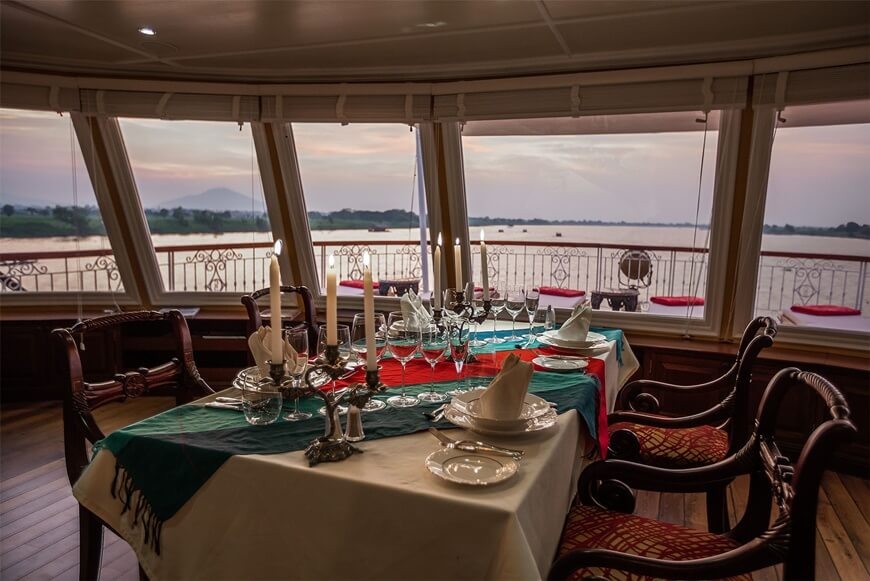 Lying on the Terrace Deck, the open - air Viceroy dining hall is a perfect place to savour in the delicious meals as well as the stunnng views of the Mekong River.