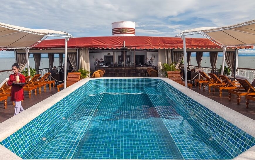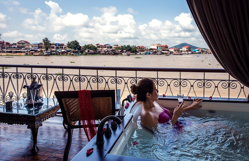 The Jahan is considered as Heritage Line’s most charming cruiser on Mekong river. This cruise offers an atmospheric club, a jacuzzi on its pool deck, an observation lounge, a spa and gym with steam bath. With 26 beautifully designed cabins on two sides of the cruise with private balconies, this magnificent Mekong river cruise will be a place where you can relax, get pampered by the luxurious utilities and enjoy an astounding vacation.