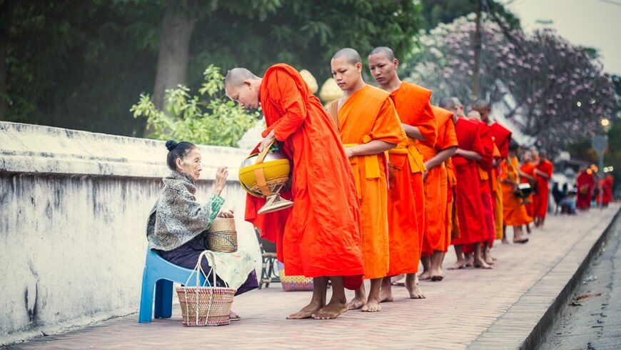 Wake up early in the morning then you can join with the saffron-clad monks' routine morning rituals. There is a black Alms-giving bowl in their hands to hold the offerings from the locals.